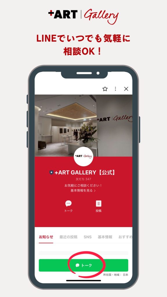 作品の購入のご相談(特に初めてです!という方や少し話を聞いてみたいという方)は、公式LINEにてご相談を承ります。