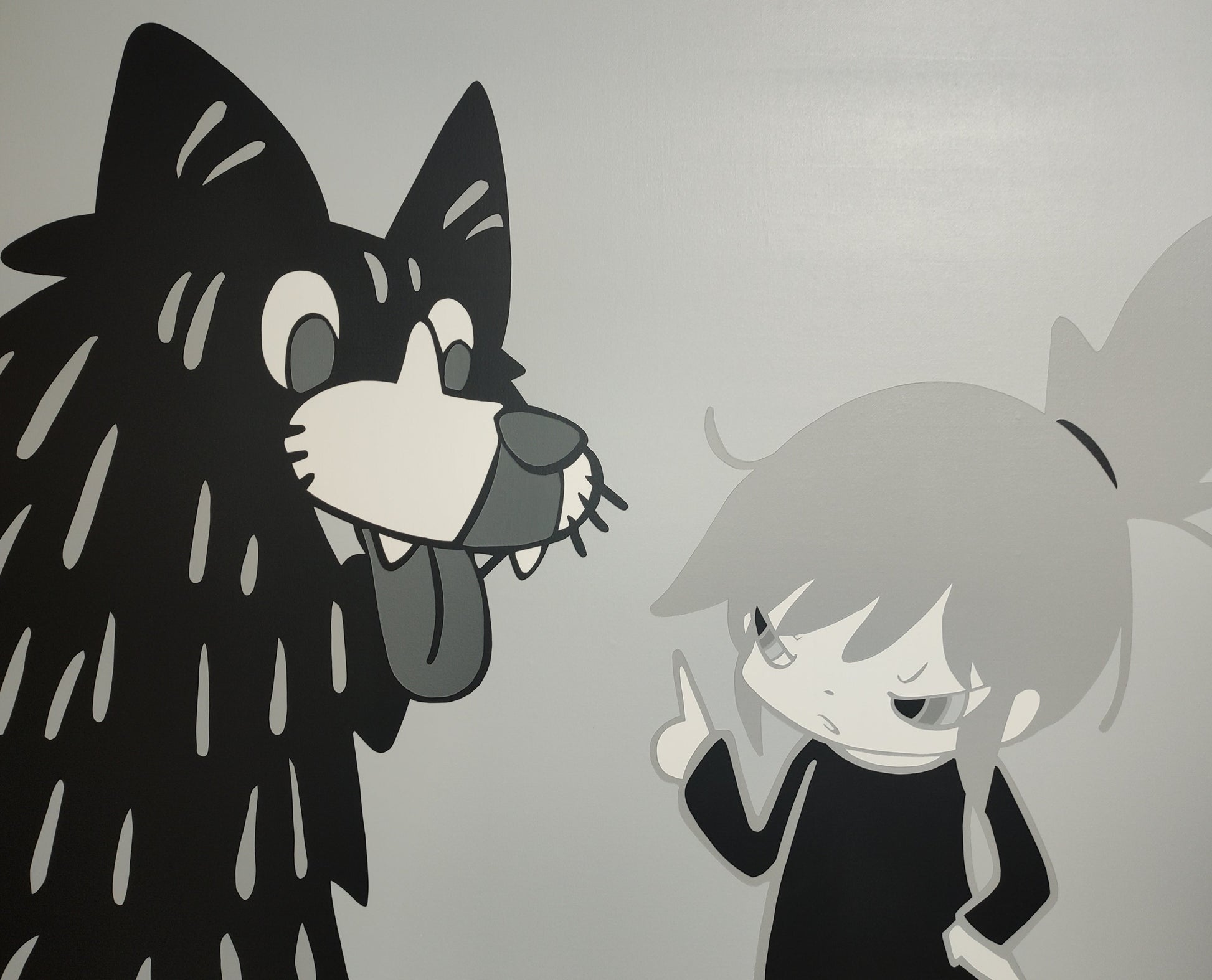 主にマスキングを使って描くが、筆、ローラー、スポンジ等、ペイントの道具は決めていない。