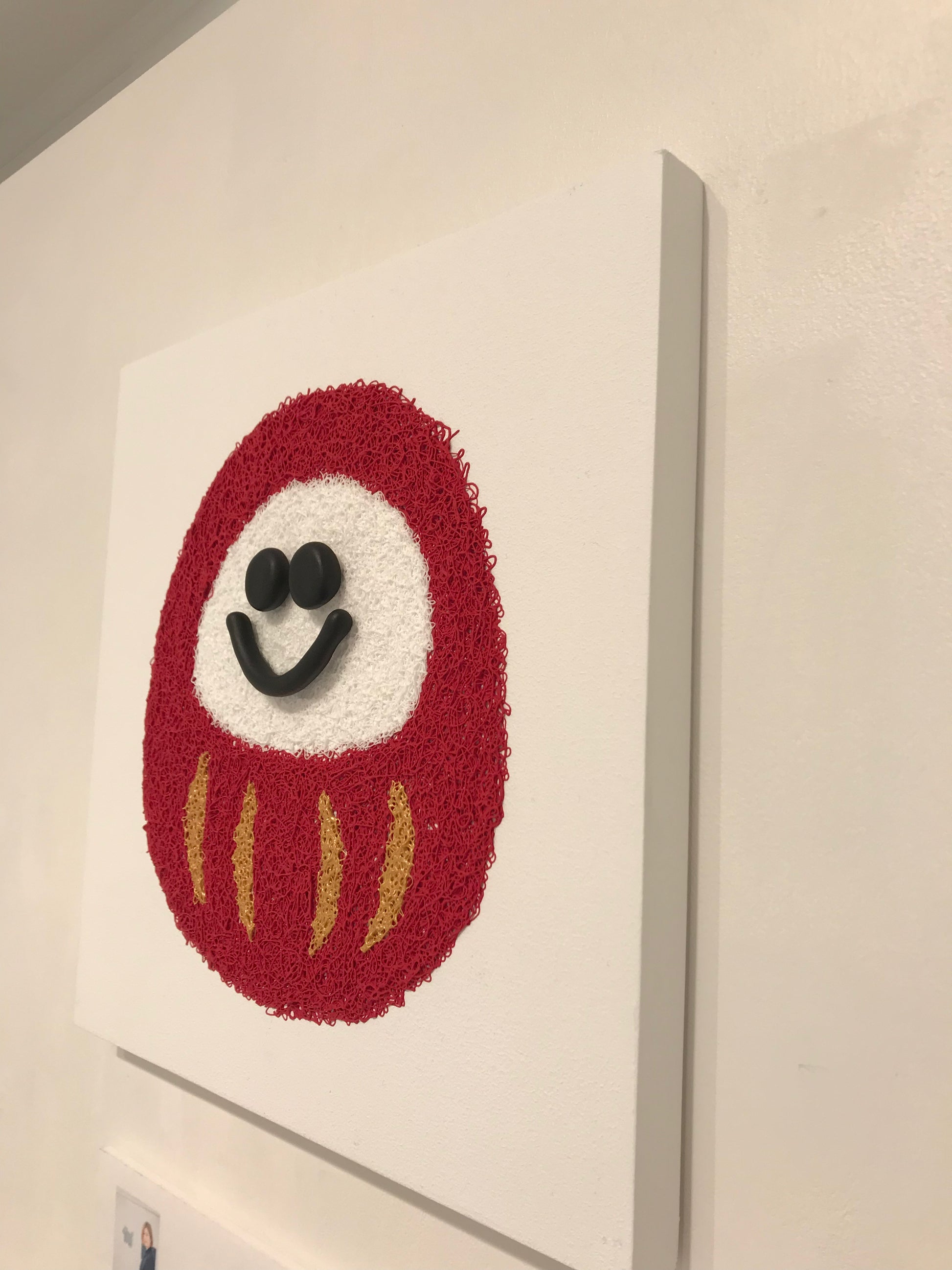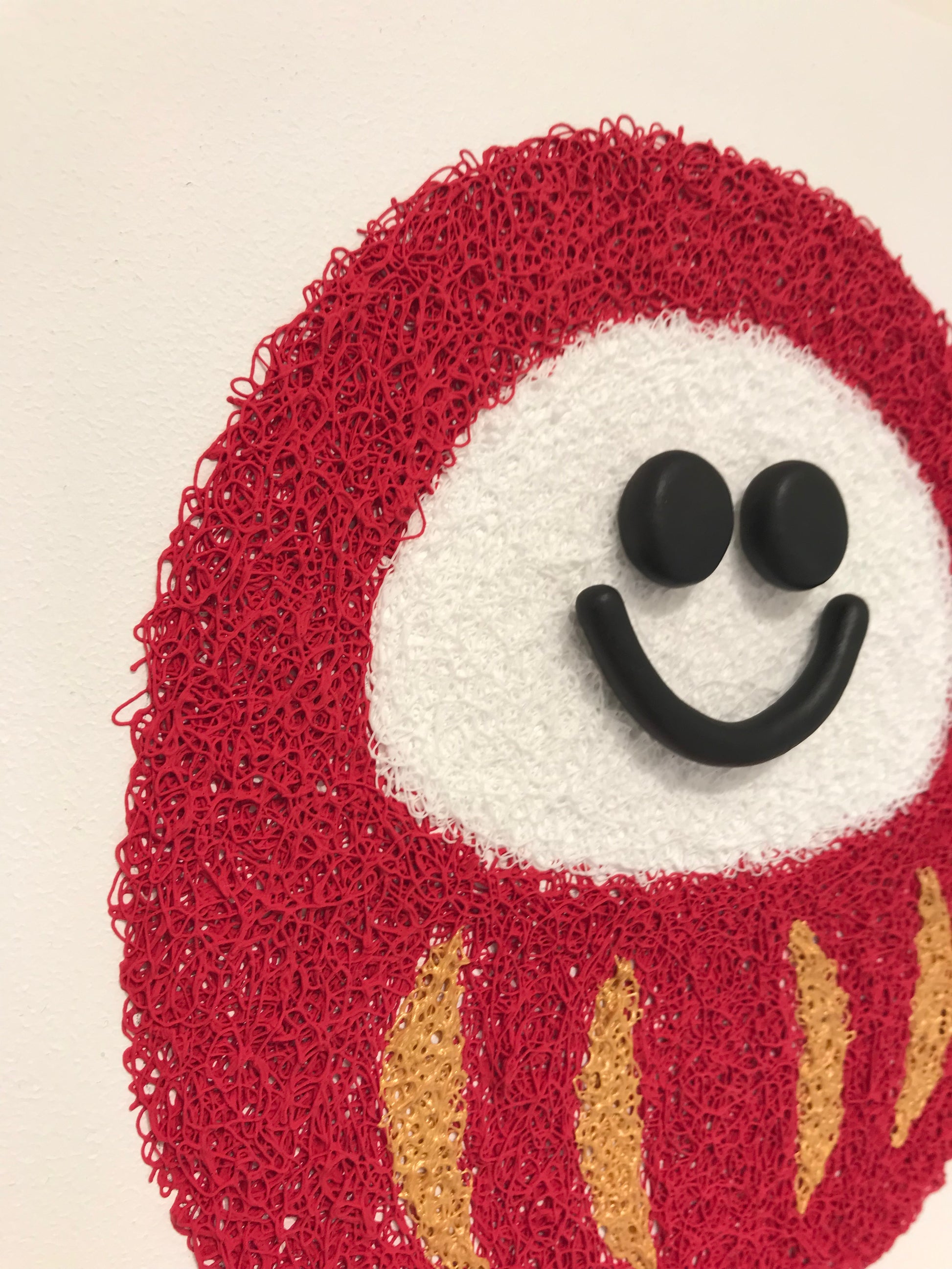 心の内側を表現したMixed Emotionsシリーズでダルマを制作。動物の作品と同様に、笑顔の絵文字を表情として載せています。